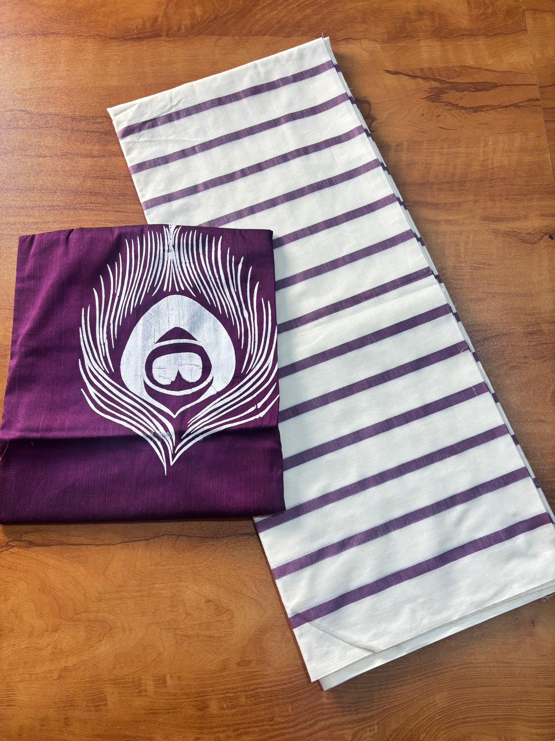 KB30-Myilpeeli lines cotton Pattu Pavada unstitched
