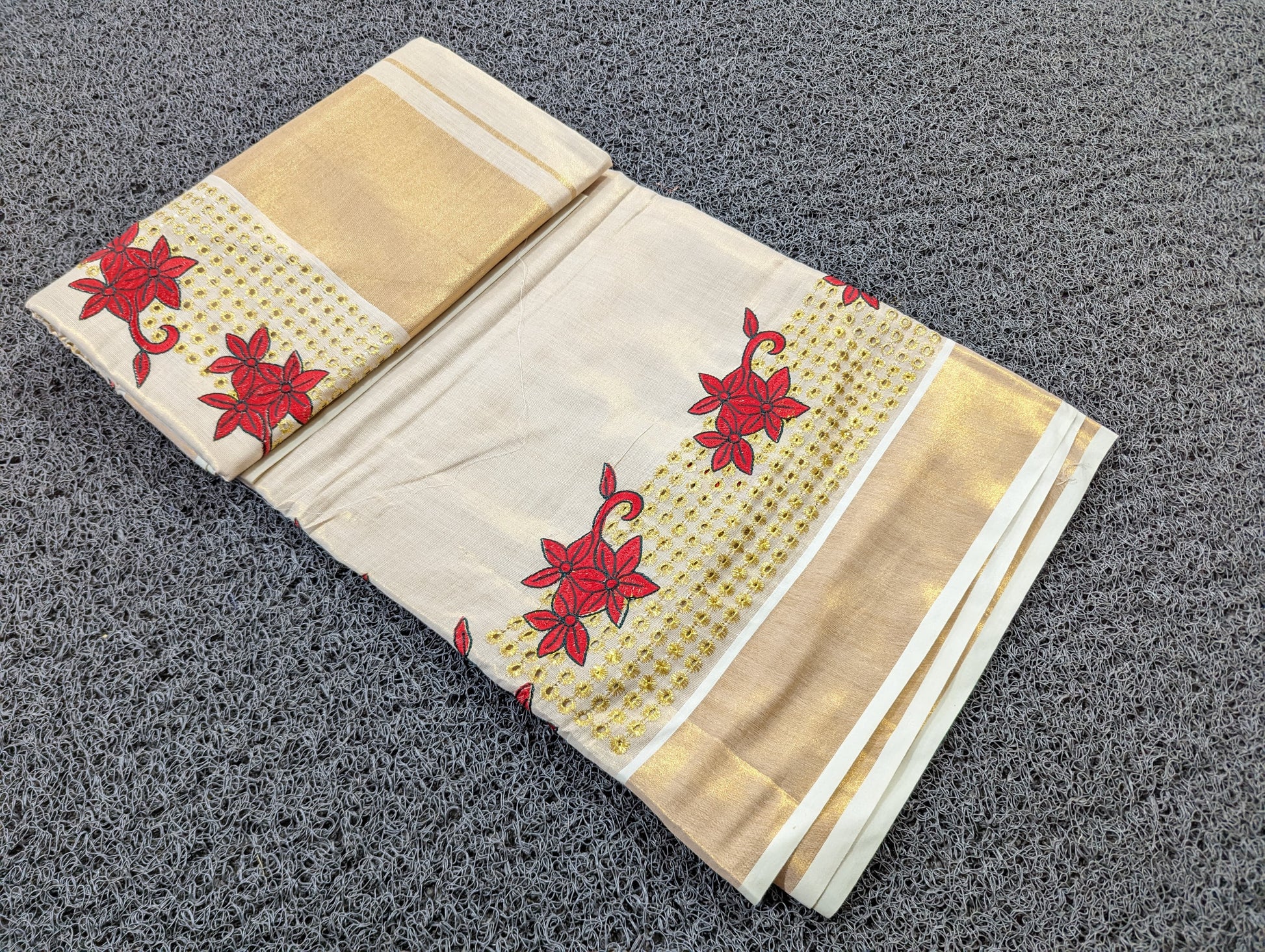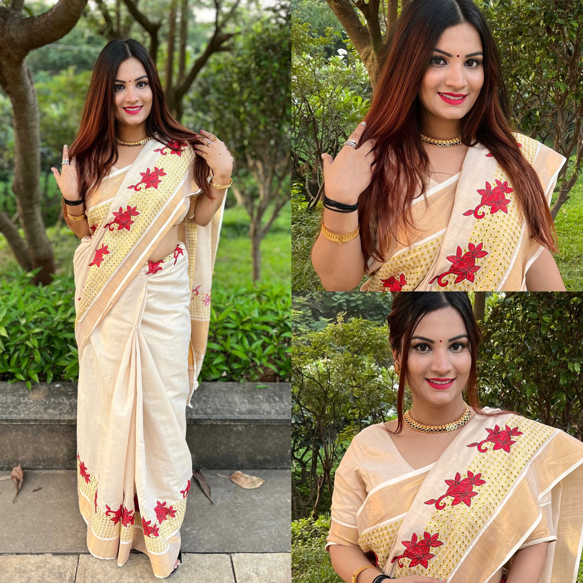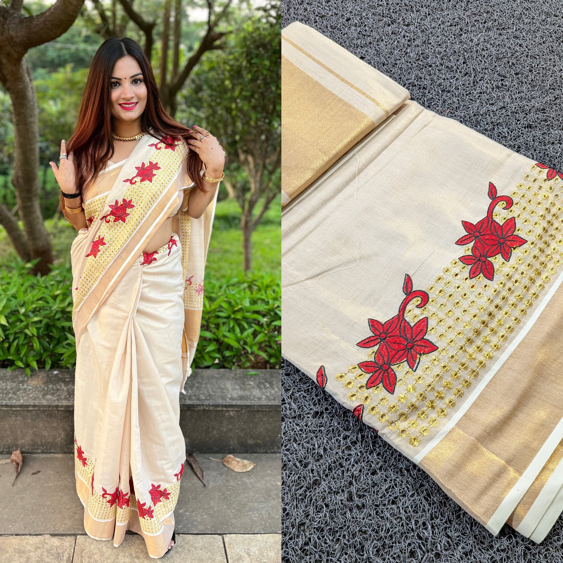 Be bold and beautiful in the Kerala Saree! This stunning piece features a stylish brown and gold design for a standout look perfect for special occasions. Let its feminine charm bring out the best in you.